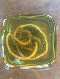 After boiling, I placed one undyed string in each dye container in addition to the already-tinted ones. When I woke up a measly four and a half hours later, I placed the containers on a sunny windowsill and stumbled downstairs to start a drowsier-than-usual class. (I took the above photos around noon.)